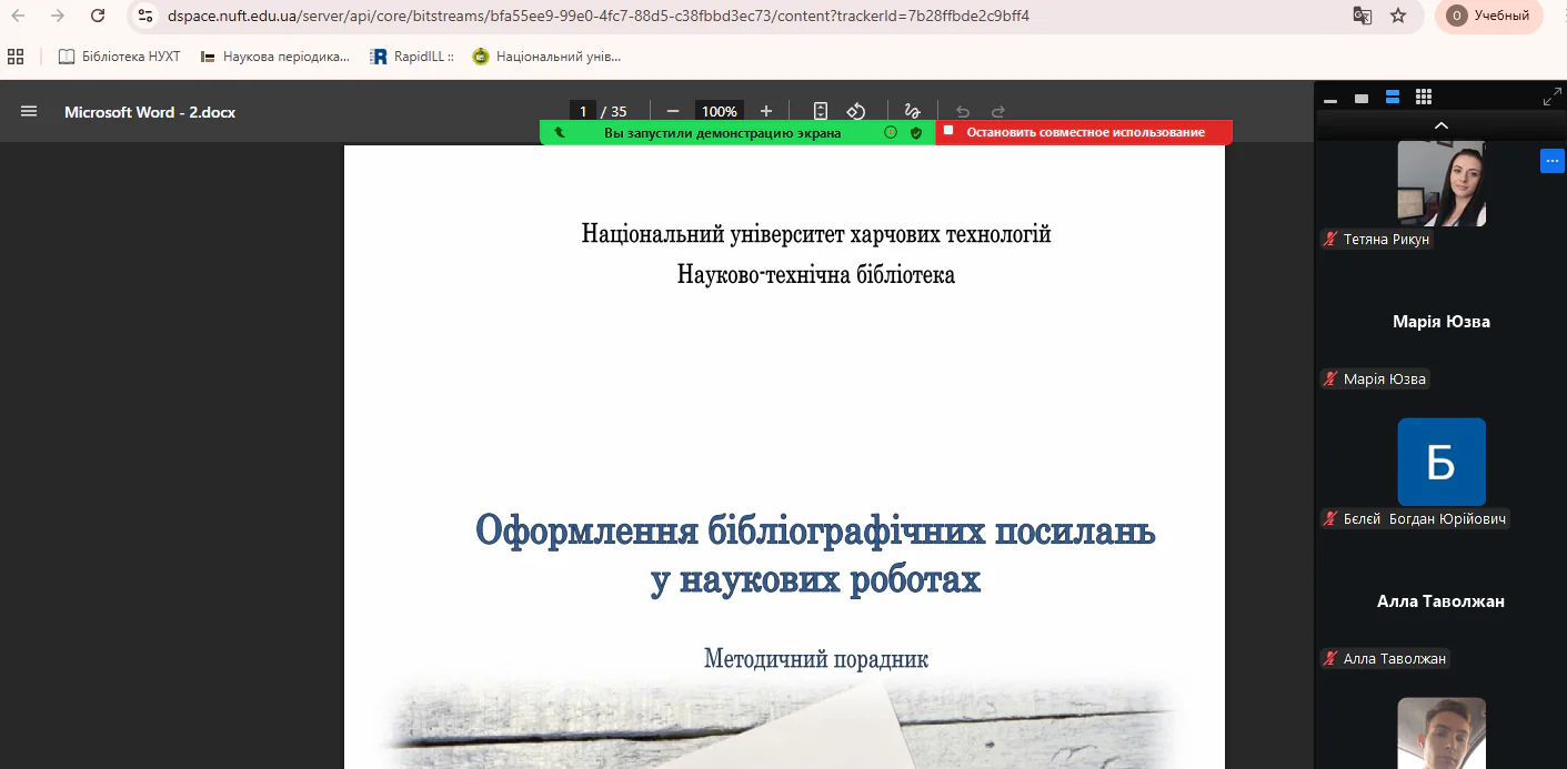 Такий формат взаємодії дозволив не лише поглибити знання, а й сформувати практичні навички, необхідні для успішної дослідницької діяльності. Здобуті компетентності стануть надійною основою для підготовки наукових робіт і сприятимуть розвитку інформаційної культури майбутніх фахівців, здатних не лише генерувати нові знання, а й ефективно презентувати їх у академічному середовищі.