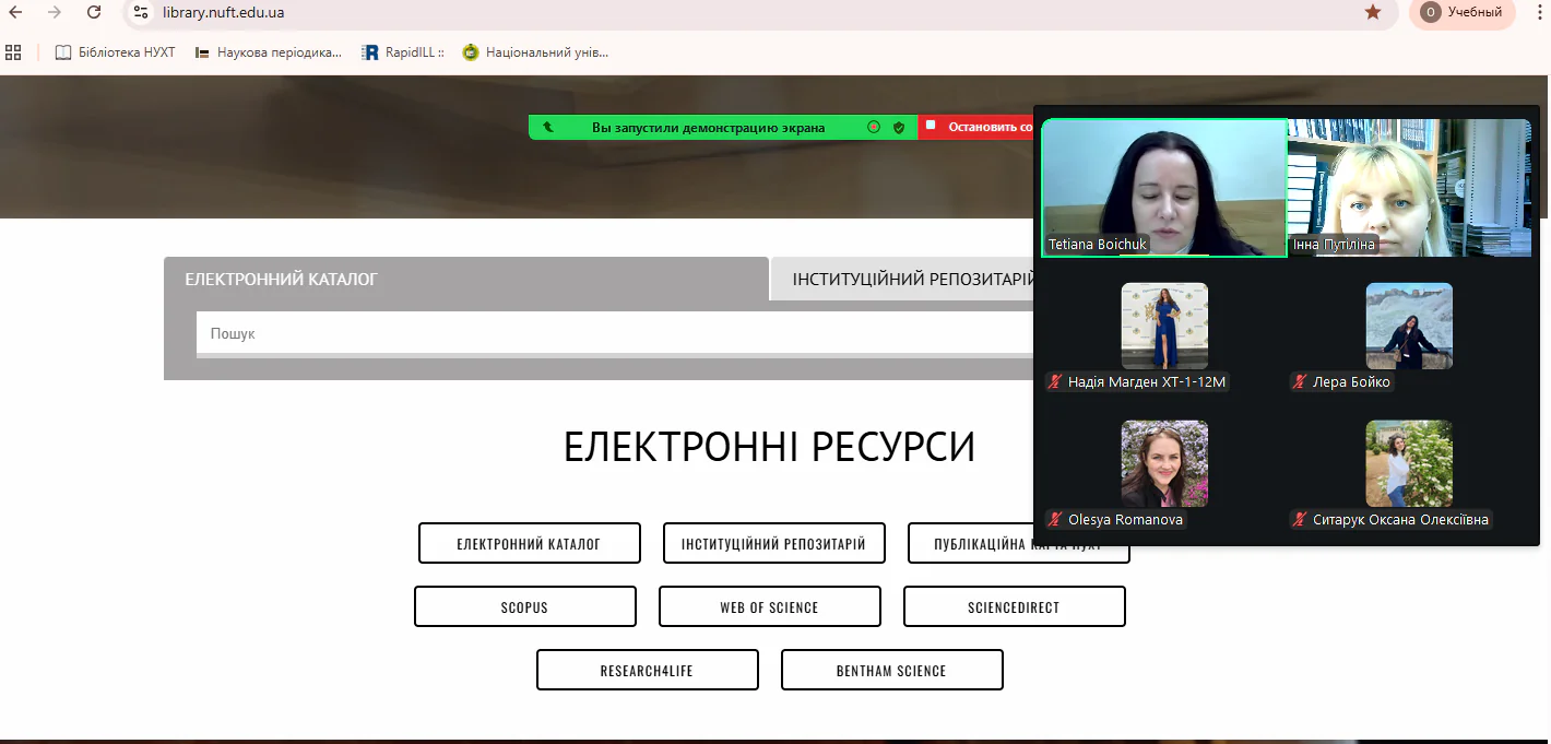 Захід став своєрідною інтелектуальною платформою, де поєдналися теорія і практика наукового пошуку. Присутні ознайомилися з можливостями електронного середовища науково-технічної бібліотеки: Інституційного репозитарію, повнотекстових баз даних, ресурсів відкритого доступу та міжнародних наукометричних платформ. Робота з базами даних Web of Science і Scopus постала як ефективний інструмент навігації у глобальному науковому просторі, де важливими є не лише джерела, а й їхня наукова цінність, цитованість і контекст.